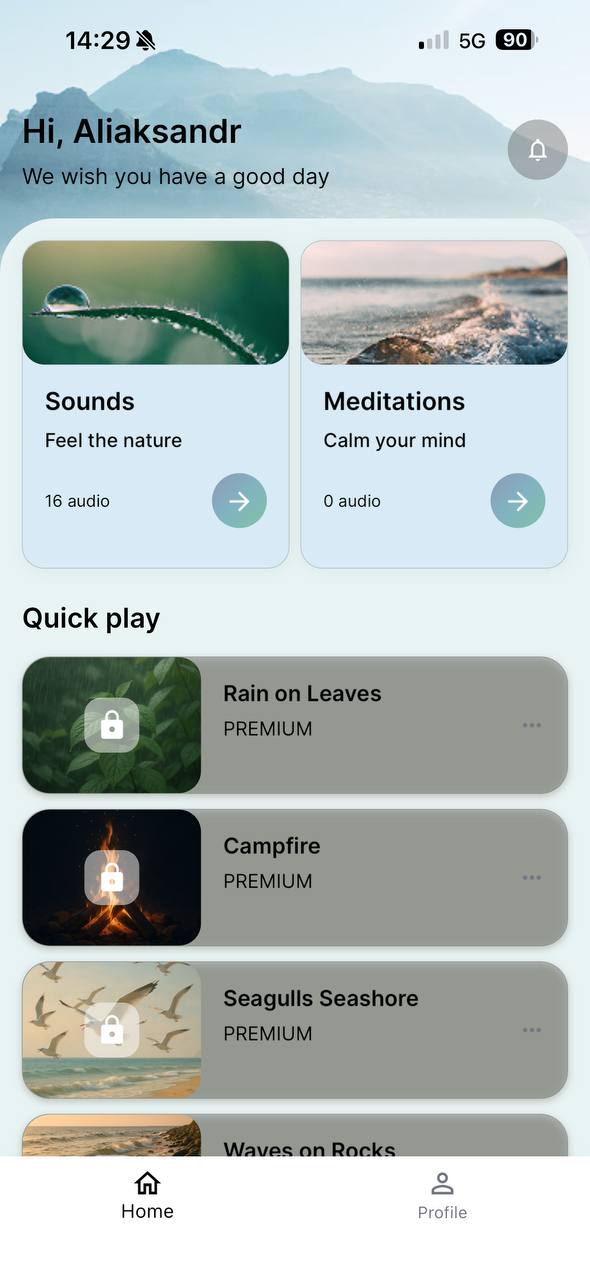 Reduce stress and anxiety with guided breathing exercises and calming soundscapes.